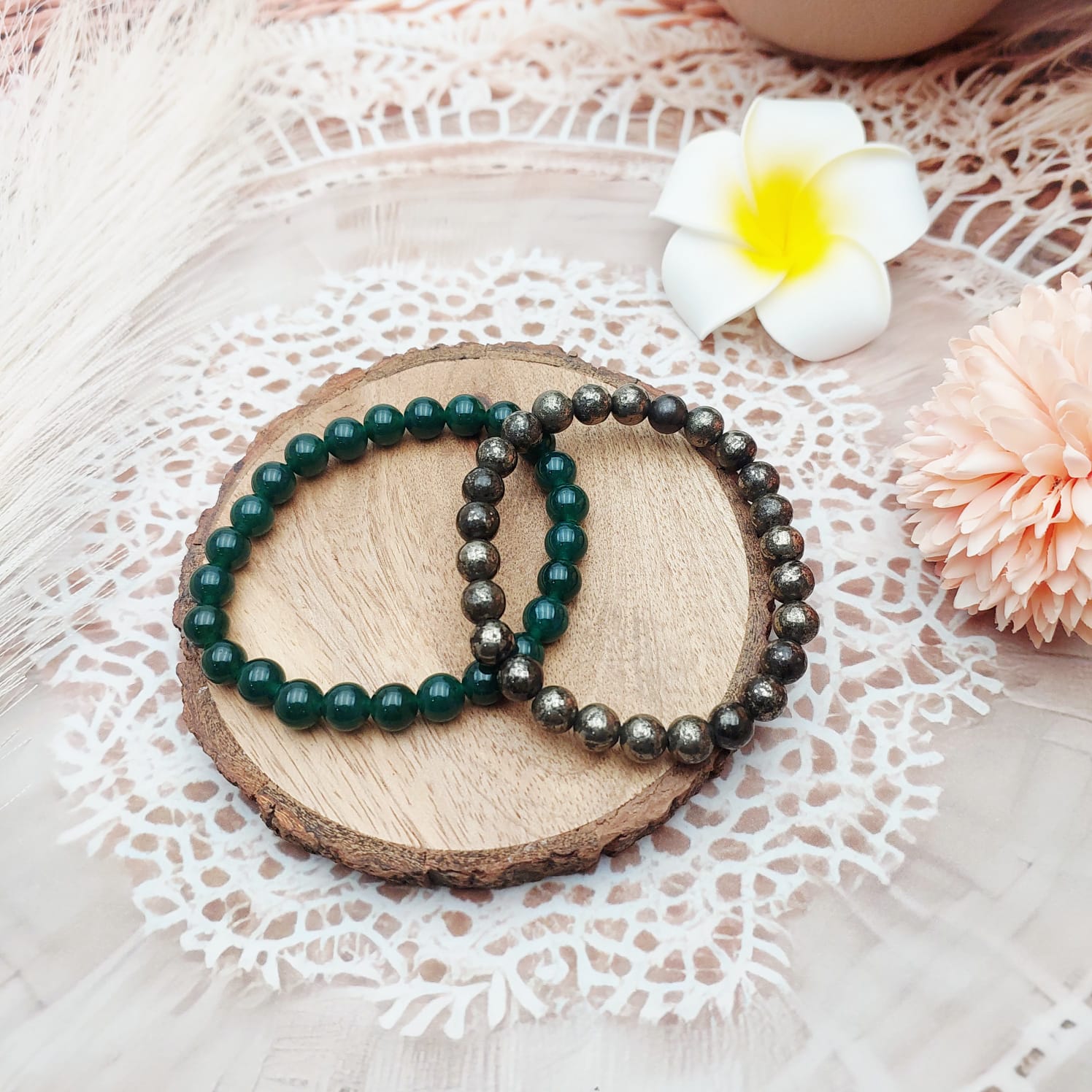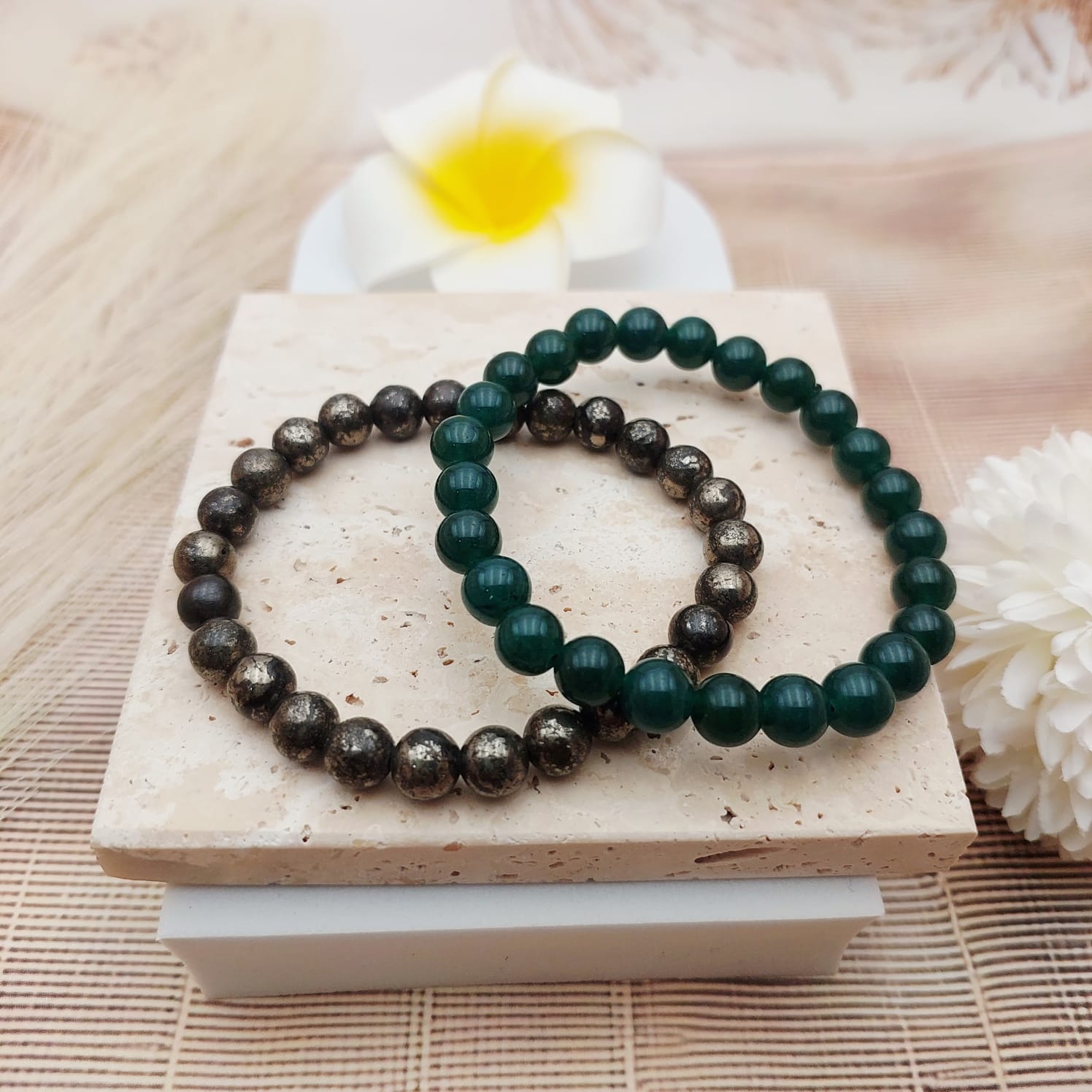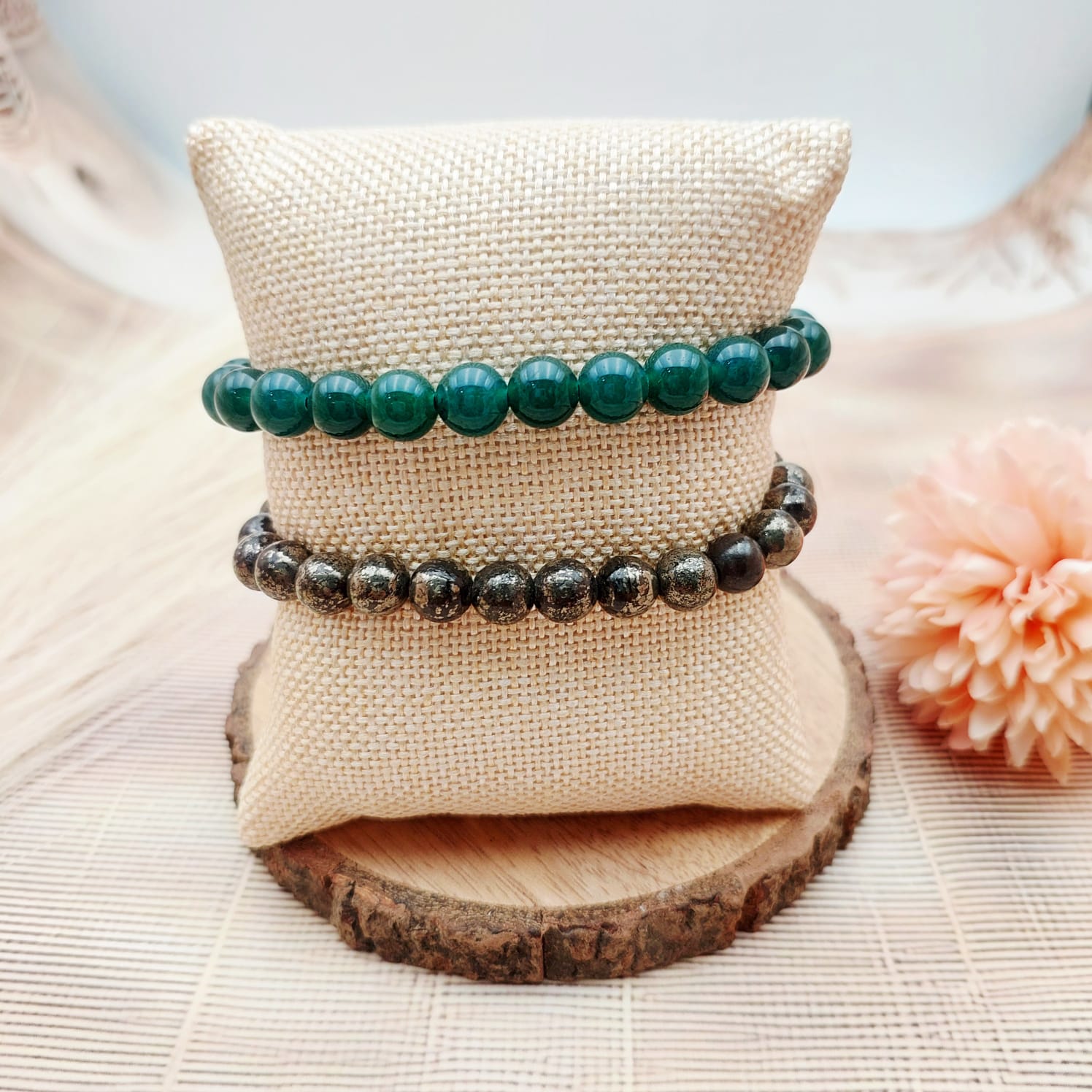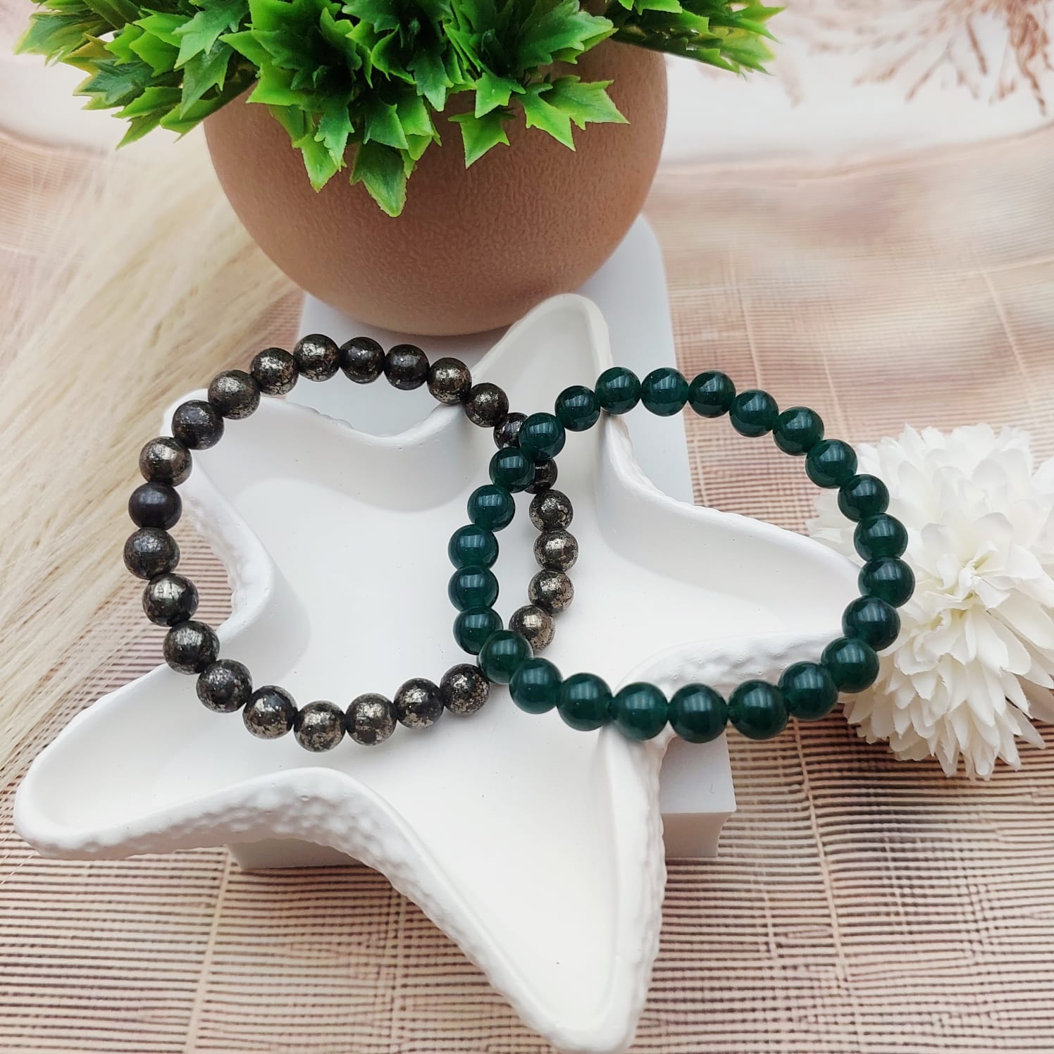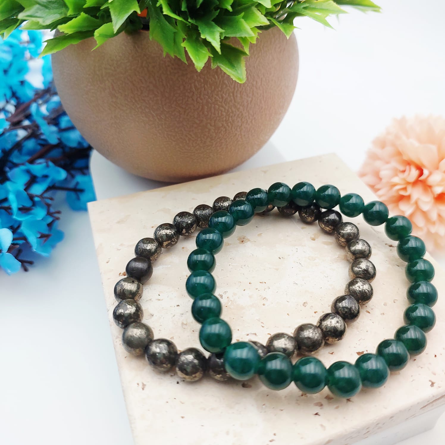 Attract wealth, stability, and inner balance with our Green Jade & Pyrite Bracelet Combo. This powerful pairing blends the nurturing, harmonizing energy of Green Jade with the bold, success-driven vibration of Pyrite — forming a perfect union of luck, prosperity, and protection.