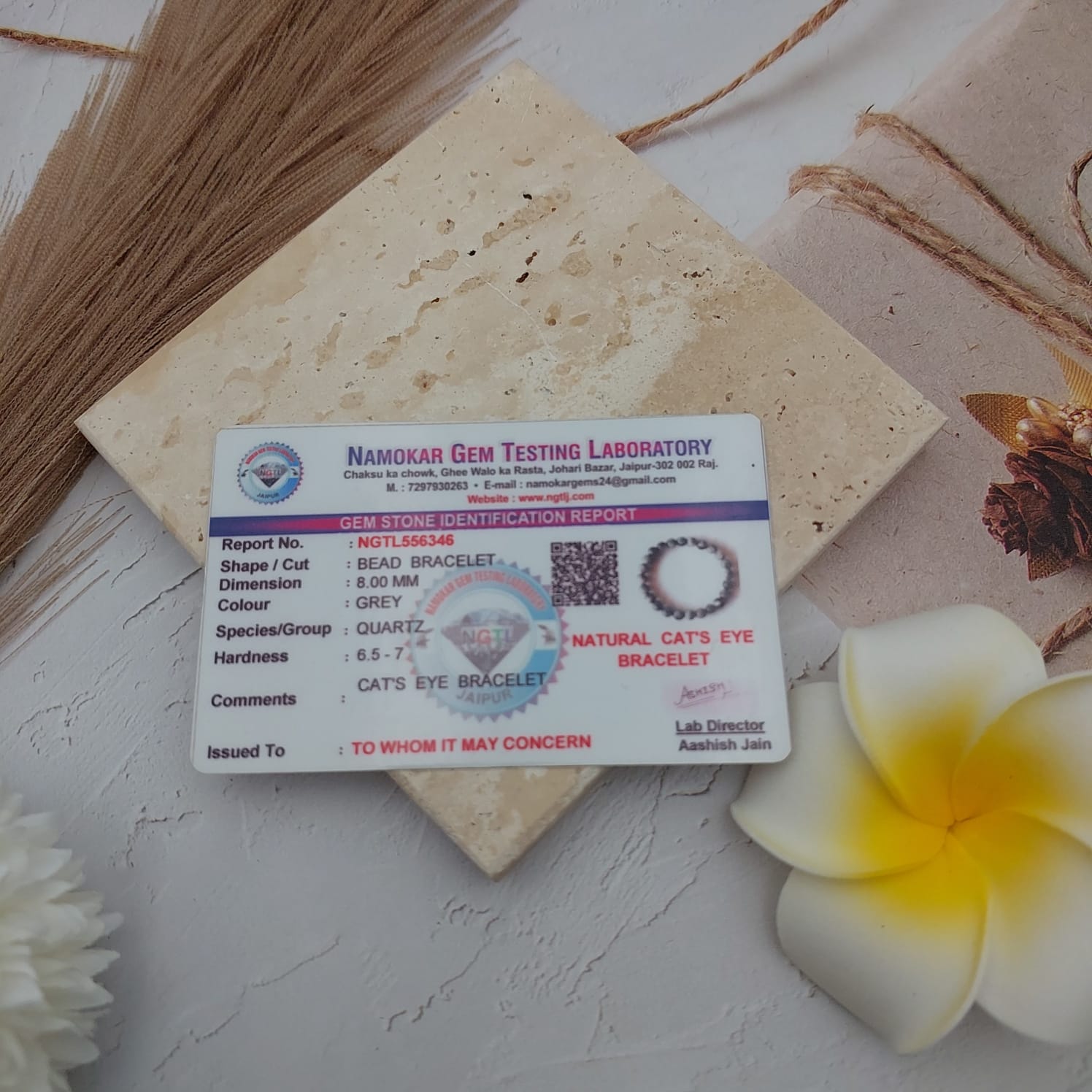 The Cat’s Eye Bracelet (also known as Lehsunia in Vedic astrology) is a powerful stone of protection, intuition, and spiritual insight. Recognized by its distinct light-reflecting band resembling a cat’s eye, this crystal carries strong metaphysical energy that wards off negative influences and strengthens self-awareness.